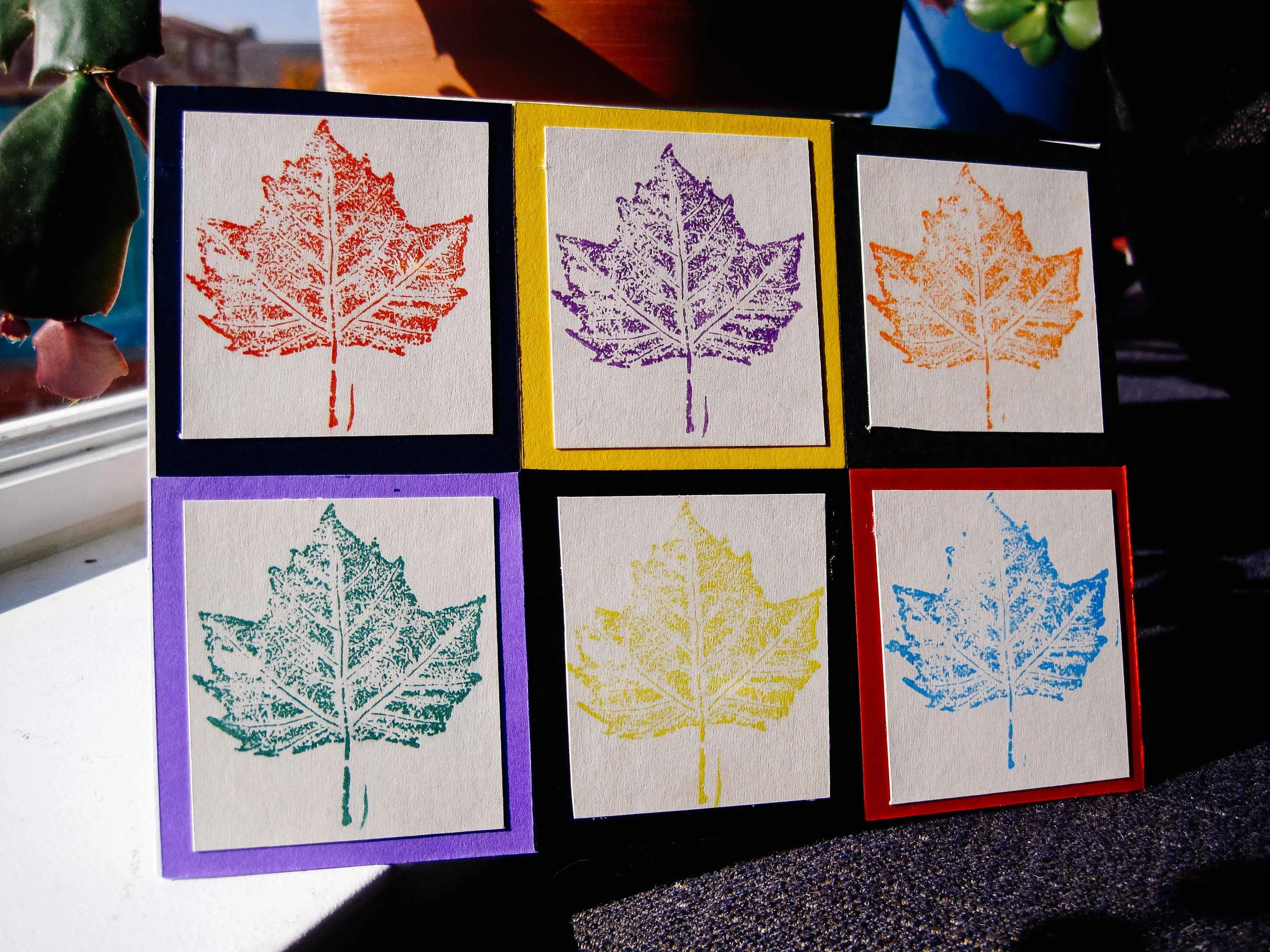 For smaller children, leaf rubbings are a classic way of exploring colors and shapes of nature. Rubbing an unwrapped crayon over a piece of paper with a leaf beneath it will allow them to draw a this favorite autumn standard. Additionally, stamps are a playful way to experiment with objects such as apples, pumpkin stems, leaves, flowers, pine cones, and more.